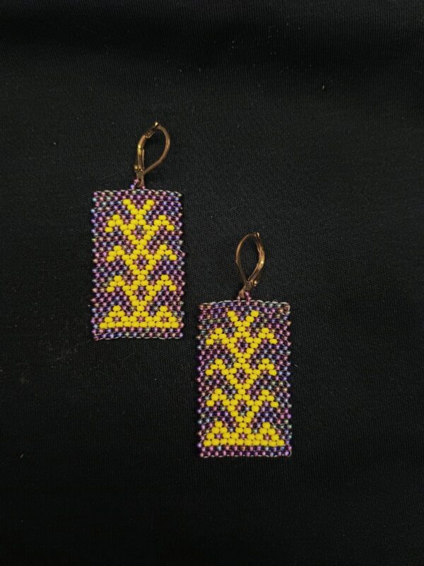 Estos aretes artesanales están completamente tejidos a mano con chaquirilla, formando un diseño inspirado en la simbología ancestral del pueblo Kamëntsa. Cada patrón y combinación de colores rinde homenaje al espíritu creador de la vida, representando su manifestación en el mundo material a través de formas llenas de significado y conexión con la naturaleza.