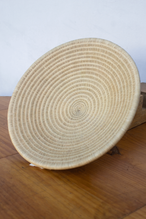 Creada por Wilmar Cuero, líder de taller artesanal de la etnia Wounaan, originario del Litoral de San Juan, Chocó, esta bandeja representa la preservación de técnicas ancestrales. Wilmar trabaja con fibras naturales, promoviendo la identidad cultural y el arte tradicional del Pacífico colombiano.