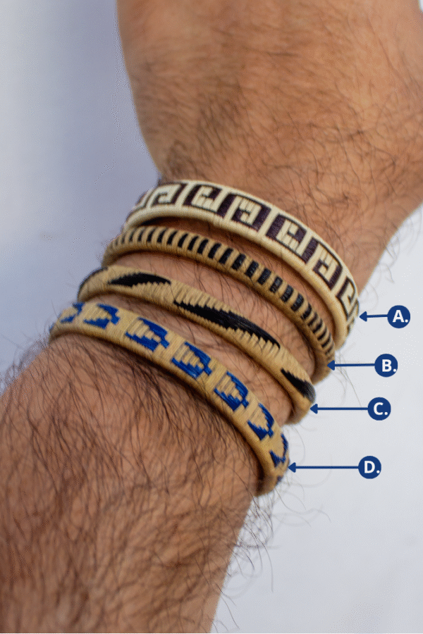 🔥 Brazaletes tejidos en palma de Werregue: Diversos diseños con simbología ancestral en color Natural.