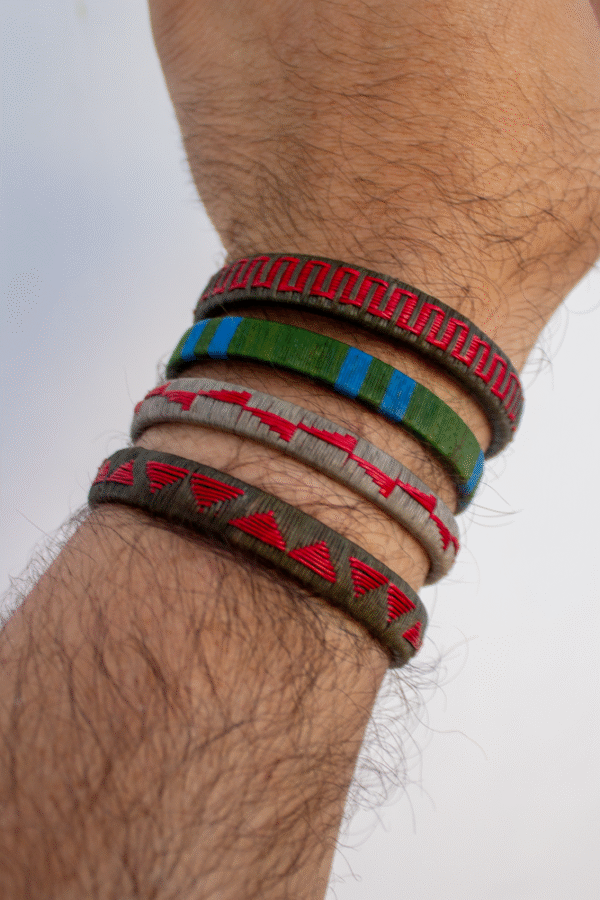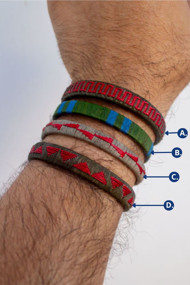 Tejidas a mano por artesanos de la comunidad indígena Wounaan, estos brazaletes destacan por sus patrones audaces y su presencia imponente. Cada diseño es una expresión del legado cultural del Pacífico colombiano, que se transmite con orgullo a través del arte tejido.