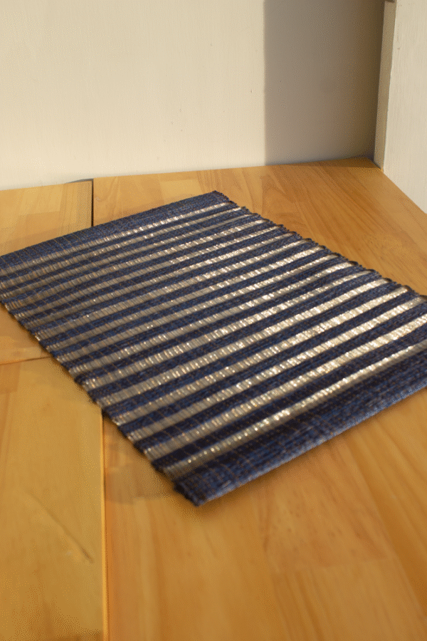 🌎 Resalta tu mesa con una pieza tejida con historia y creatividad. 🔸 Descubre el Individual a Rayas Índigo y Estaño y conecta con la tradición del telar manual.