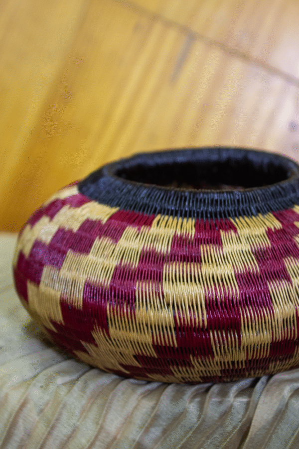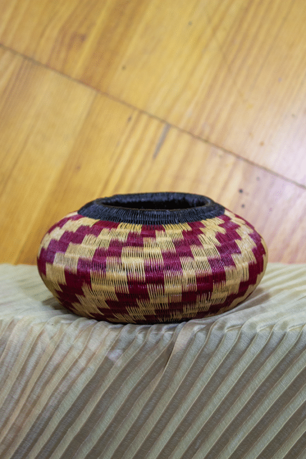 Creado por Cerapio, maestro artesano de la comunidad Wounaan, este jarrón representa la memoria viva de los pueblos del río. Inspirado en los antiguos cántaros con los que se transportaba el agua, este objeto honra la conexión espiritual de la comunidad con el río y la naturaleza.
