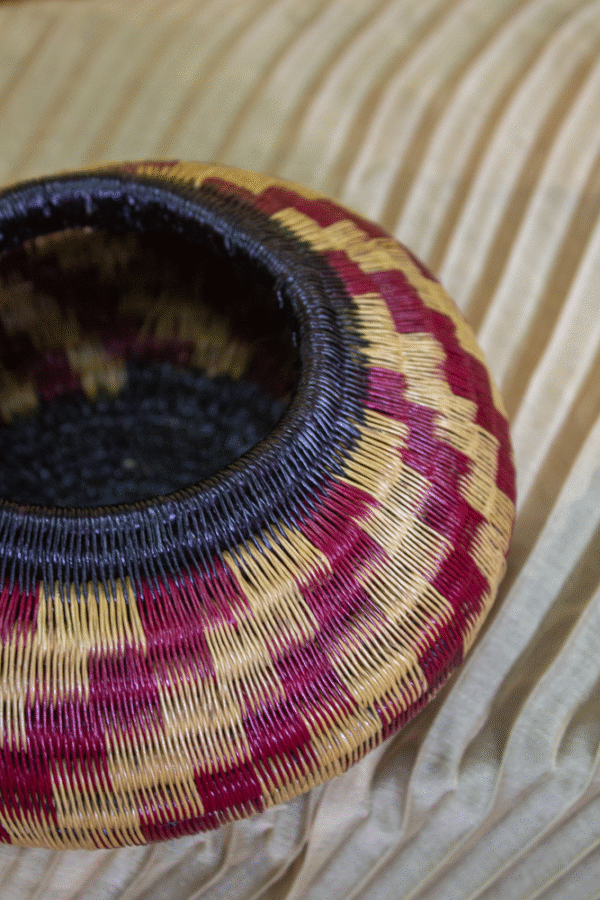 La palma de werregue, fibra emblemática del tejido Wounaan, ha sido utilizada por generaciones para crear piezas utilitarias y simbólicas. En este diseño circular, los patrones gráficos expresan el flujo del agua y los ciclos de la vida, recordándonos la importancia de cuidar lo esencial.