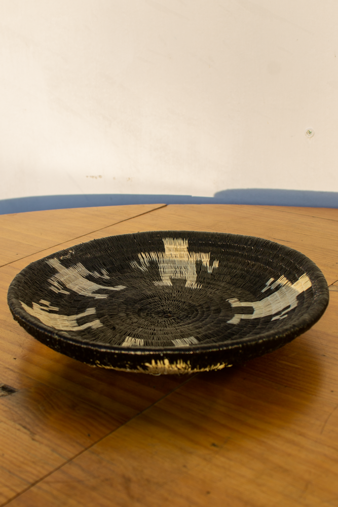 Creado por Cerapio, maestro artesano de la comunidad Wounaan, este platón representa la memoria viva de los pueblos del río. Inspirado en los antiguos cántaros con los que se transportaba el agua, esta pieza honra la conexión espiritual de la comunidad con el río y la naturaleza.