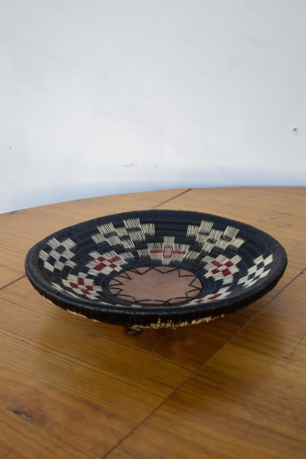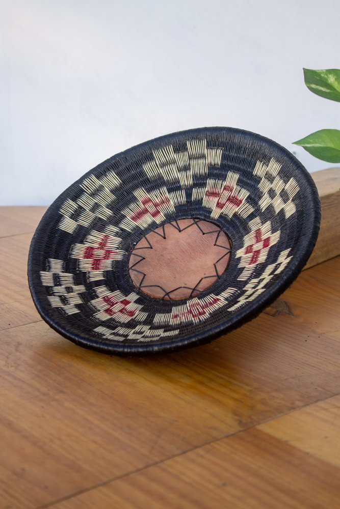 Creado por Cerapio, maestro artesano de la comunidad Wounaan, este platón representa la memoria viva de los pueblos del río. Inspirado en los antiguos cántaros con los que se transportaba el agua, esta pieza honra la conexión espiritual de la comunidad con el río y la naturaleza.