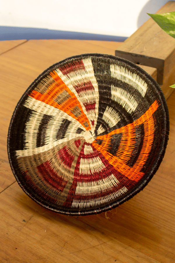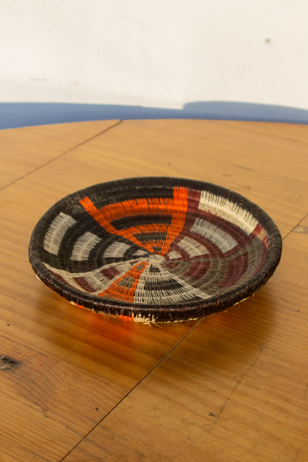 La palma de werregue, fibra emblemática del tejido Wounaan, ha sido utilizada por generaciones para crear piezas utilitarias y simbólicas. En este diseño circular, los patrones gráficos expresan el flujo del agua y los ciclos de la vida, recordándonos la importancia de cuidar lo esencial.