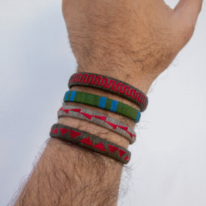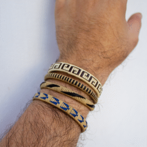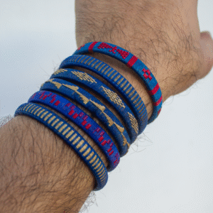 Brazaletes tejidos en palma de Werregue – Variaciones en Azul.
