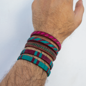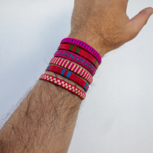Brazaletes tejidos en palma de Werregue – Variaciones en Magenta.