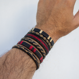 Brazaletes tejidos en palma de Werregue – Variaciones en Negro.